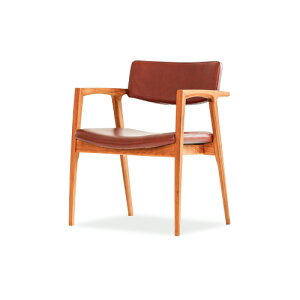 アッシュ無垢材とPVCレザーが相性抜群のチェア。ハーフ肘の背もたれは程よく曲線を描いており、もたれかかったときのフィット感も申し分ありません。座面クッションにはウレタンが使用されており、程よい硬さにより長時間座っていても疲れにくいです...