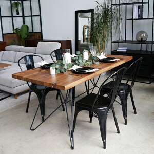 マットブラックのアイアンフレームとオイル塗装したパイン天然木の異素材の組み合わせがスタイリッシュさと重厚感を併せ持つグラントシリーズのダイニングテーブル。職人による天然木へのエイジング加工がよりヴィンテージ感を演出し、風通しのよいオー...