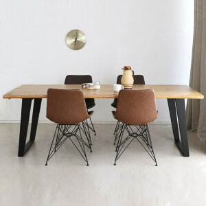 サイズW1850mm×D850mm×H700mm天板厚 45mm材質テーブル天板:ウォールナット突板(一部アッシュ無垢材使用) 脚:スチール仕上げ:ウレタン塗装カラーウォールナット生産国ベトナム脚位置を移動可能。