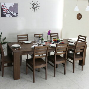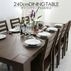 8人で囲める、天然木ラバーウッド材の温もりダイニングセット。 【材質】 ラバーウッド材。 【サイズ】 テーブル:幅240×奥行100×高さ74cm。 チェアー:幅43.5×奥行49×高さ93(座面高さ44.5)cm。 【色】 ブラウン。