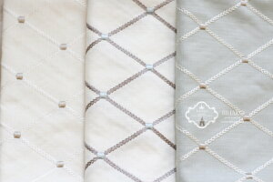 イギリスから届いたリネン混のベースにダイヤ柄チェーン刺繍がおしゃれな生地。 カルトナージュはもちろん、お茶箱やパネル用にも重宝するお生地です♪ ♪生徒様の作品や、お客様より頂いたお写真をご紹介♪ リネン/レーヨン/フェミニ