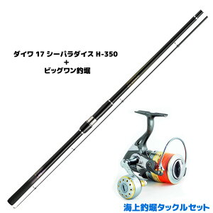 海上釣堀タックルセットダイワ 17 シーパラダイス H-350■全長(m):3.50■継数(本):4■仕舞(cm):100■自重(g):230■先径/元径(mm):1.7(1.6)/25.1■オモリ負荷(号):0.5-18...