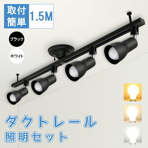 ダクトレール スポットライト セット 幅1.5m 【ダクトレール仕様】個数:1本 サイズ:約 W1506mm×H80mm×D148mm カラー:ブラック/ホワイト 材質:鉄 使用電圧:6A(600W)まで...