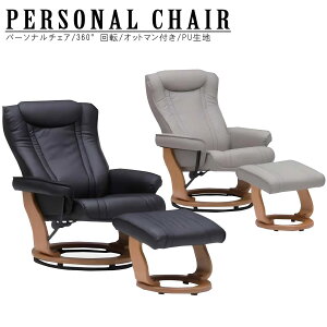 【商品名】 パーソナルチェア リクライニングチェア 幅82cm 1人掛け 本革 360度回転 リクライニング 肘付き 木製脚 オットマン グレー GY 組立品 【ジャンル・特徴】 パーソナルチェア リビングチェア...