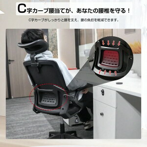 【人間工学設計・跳ね上げ式アームレスト】人間工学の概念に基づき、椅子はS型背もたれ設計を採用し、人体の曲線に一致する設計と同時に、全体の力点を有する。背骨をしっかりにサポートできて、座りっぱなしの腰に強い負担をかけず、