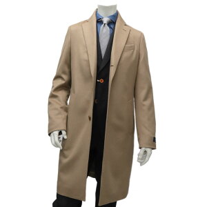 美しい光沢感が魅力のカシミヤを100%使用した高級感あふれる比翼仕立てのメンズカシミヤシングルチェスターコート。 ・本格仕様の正統派シングルチェスターコート ロング丈、胸箱ポケット、フラップ付腰