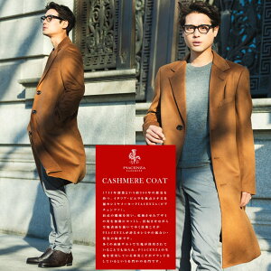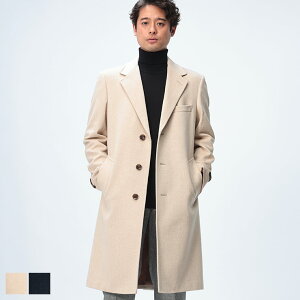カシミヤ100%生地を使用した軽く、滑らかな肌触りのチェスターコート