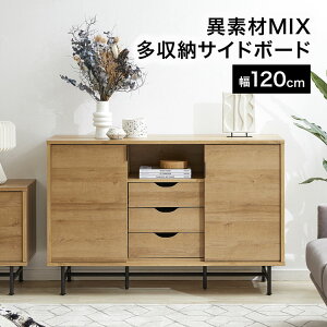 サイドボード キャビネット 収納棚 チェスト リビングボード 木製 おしゃれ 幅120 引き出し付き 脚付き 約奥行40 リビング 収納 棚 引き出し 大容量 ラック 3段 egarots