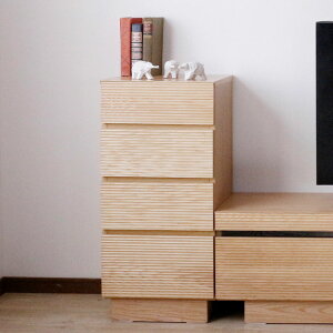容量1台材質表面材:天然木無垢天板:強化シート貼側板:プリント貼塗装:オイル仕上げ引出し:桐箱組、矩形組み手接ぎ(ロッキング組)、垣板厚16mm、底板5mm生産国日本製引き出し段数4段組立状態