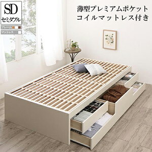 商品詳細お客様組立 国産 清潔すのこ ヘッドレスチェストベッド Renitsa レニツァ 薄型プレミアムポケットコイルマットレス付き セミダブルベッドフレーム【サイズ】セミダブル:幅120×奥行き19...