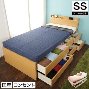。 ※お届けの時間指定を承ることができません。 大収納チェストベッド セミシングルショート ベッドの長さが小さめのショートタイプ 棚 コンセント付 引出収納6杯付き収納付きベッド フレームのみ マットレス別売桐スノコ...