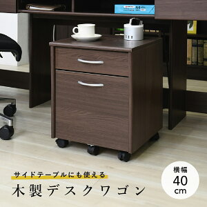 高級感のある色調と丸みのある天板が特徴的なデスクワゴン。 ●上段にはノートや筆記用具などの小物類を収納でき、下段はA4ファイルがたっぷり入る大きさで、これ1台でデスク周りがスッキリします。 ●ストッパー付きのキャ