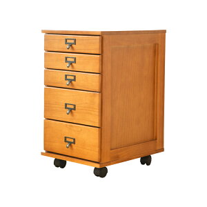 深さ ( 高さ )の 引き出し 5個 の キャスター付き 5段 チェスト です.・天然木の優しい風合いを生かした 木製 多段 チェスト・書類や文房具 タオル 日用品を 細かく分類出来ます.・ネームホルダータイプの取っ手なので