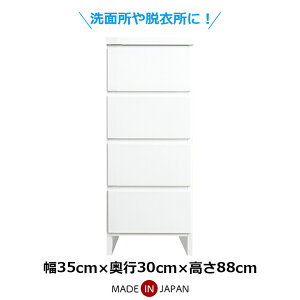 奥行30cmで洗面所や脱衣所に特化したコンパクトなチェスト。ホワイトカラーで空間に清潔感を演出します。天板には耐水性のあるポリ板を使用。引き出ししたにも小物を収納できるスペースがあります。