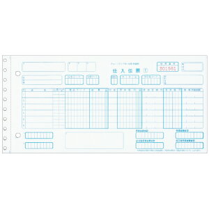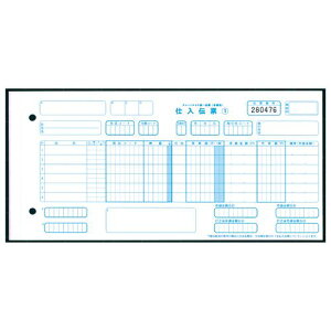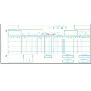 手書用。伝票番号欄に6桁の通しナンバー入り。仕入伝票1・仕入伝票2・仕入伝票3・物品受領書・納品書(控)の5枚複写。4枚目のみ黒発色。用紙サイズ:10_1/2”x5”。ミシン目切り離し後の横幅:10_1/10”。ファイル穴:2穴(80...