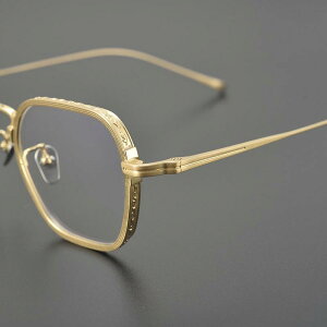 ・カテゴリ: メガネ・フレーム形状: 多角形・フレーム構造: フルリム・フレーム素材: 純チタン・レンズ素材: 天然素材・フレームカラー: ゴールド、ガンメタル、ブラック、シルバー