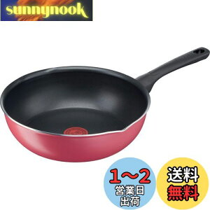 T-fal フライパン 鍋 片手鍋 深型 炒め鍋 ガス火 取っ手付き 取手付 ティファール 耐久性がアップ!より丈夫に、より軽くなり、使いやすくなりました。上品でキッチンにも馴染みやすいニュアンスレッド...