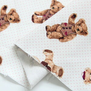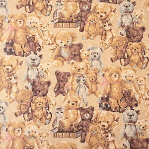 パピーテディベアコットンは、愛らしいテディベアの水彩画が描かれたコットン生地です。 シルケット加工により、さらに柔らかく肌触りが良いのが特徴です。 子供用の衣類や小物、インテリアアイテムなどにもおすすめで、温かみのある
