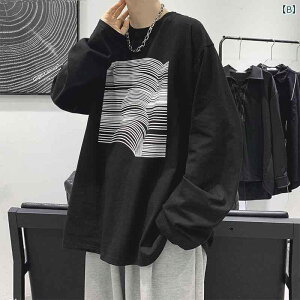 Tシャツ メンズ 長袖 春秋 コットン プリント ロゴ クルーネック カットソー トップス カジュアル ゆったり 白 黒 ベージュ・スタイル: ?版・柄: 文字.数字.アルファベット・タイプ: プルオーバー...