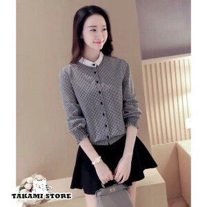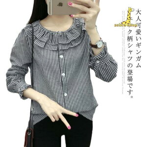 ● 商品名 ● 春物 秋物 ギンガムチェック 襟付き シャツ ブラウス レディース トップス 長袖 チェックシャツ 大きいサイズ 大人可愛い 韓国 ファッション 上品 スモールカラー 20代 30代 カジュアル...
