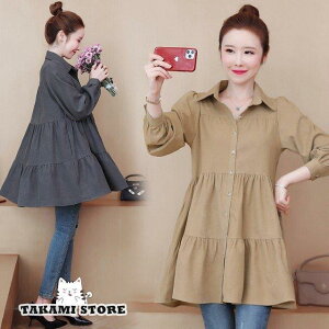 ● 商品名 ● ティアード シャツ チュニック レディース 長袖 トップス Aライン チュニック シャツワンピース ミニ丈 大きいサイズ 3L 4L 5L 6L 春 秋 ロングシャツ シャツ ロング 羽織もの...