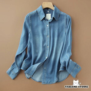 ダンガリーシャツ テンセル デニムシャツ レディース ソフトな肌触り 長袖シャツ 女性 カジュアル トップス ブラウン デニム 春秋