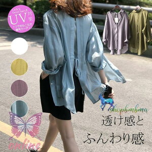 シアーシャツ レディース ブラウス シャツ オーバーサイズ 羽織り 無地 ゆったり 大きいサイズ 透け感 UVカット シースルー 薄手 ゆったり 長袖 UVシャツ ホワイト グリーン ラベンダー ブルー...