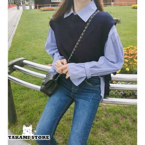 商品名 ● ニットベスト シャツセット レディース トップス ニットアンサンブル アンサンブル 襟付き ストライプ シャツ ブラウス 大きいサイズ シャツブラウス 長袖 キャンディスリーブ サイドリボン 大人可愛い...
