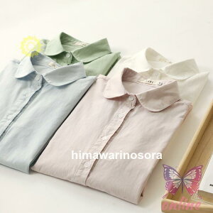 透け感:若干あり 裏地:なし【カラー】:ホワイト ピンク ブルー(写真はご参考程度)A:ピーターパン襟長袖シャツB:折り襟長袖シャツ C:ピー