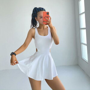 スポーツウェア レディース ワンピース 夏 ランニング 速乾 テニス バドミントン ゴルフ フィットネス ノースリーブ ミニ 短パン付 白 紺 水色サイズ: SML XL生地: スパンデックス色の分類:白(短パ...