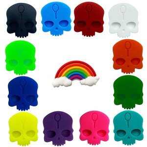 テニスラケット用振動止め スカル シリコン ダンプナー ブルー/ブラック/オレンジ 3個材質:シリコン用途:ラケットの振動を最小限に抑えるラケットラインの真ん中に配置するだけで、しっかりと固定され、滑り落ちや脱落の心配がなく...