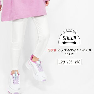 スポーツや衣装に!日本製 キッズホワイトレギンス 10分丈