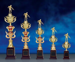 1.高級ラインの木製台・樹脂製トロフィーです 2.サイズ展開の豊富なトロフィー 3.トップの人形を各種競技、法人、趣味などから選べます ※プレート彫刻・金リボン装飾は【無料サービスです】 【トロフィー