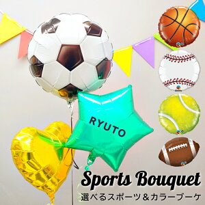 選べるスポーツバルーン電報 ・ヘリウムガス入り浮かせてお届けするバルーンブーケ ・オモリ付きなので届いたらすぐに飾れます ・トップのスポーツバルーンは野球、バスケットボール、サッカー、テニス、アメフトの中からお選びくださ
