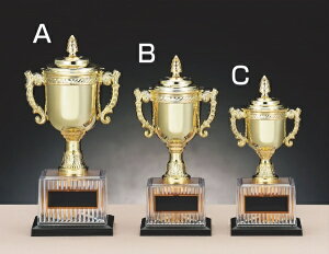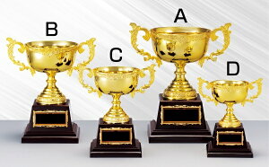 ダイキャスト製でずっしり重みのあるゴールドカップです。本体:ダイキャスト製 / 台座:樹脂製A 22.5?×12φ 750g B 19.5?×10.5φ 510g C 16.5?×9φ 450g D 14?×7.5φ 300g