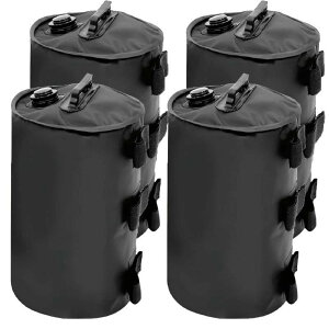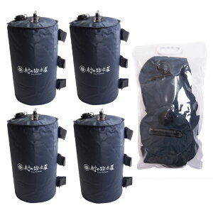 【簡単設置】 バルブを開けて水を入れるだけでタープやテントの重りとしてお使いいただけます。1個当たりの容量は約10Lで、4個合計で約40kgの重りとしてご使用いただけます、ペグが打てないアスファルトの上や、ビー...