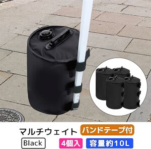 タープ テント 用 マルチ ウエイト テント 重り 水 テントウェイト ウェイトバッグ バンドテープ付き 10L ブラック 4個入り 水 タープテント 重し キャンプ コンパクト 万能ウエイト