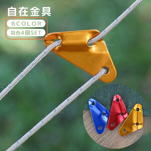 ロープの固定・調節に役立つ三角形タイプの自在金具。 アウトドアでのテント・タープの設営に◎ ※同色の4個セットです。 【サイズについて】 画像をご参照ください。 【カラーについて】 生産ロットにより柄の出方や色の濃淡が異なる場