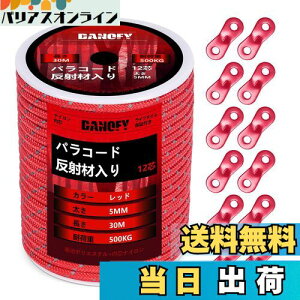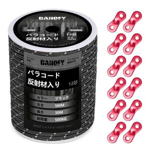 ガイロープ テントロープ 5mm 反射パラコード 自在金具付き 20m/30m/50m 耐荷重250kg キャンプ テント タープ アウトドア用。