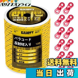 光るテントロープ50mです。 テントやタープの張り綱を目立つ色にすることで昼間はもちろん夜間の転倒などの事故を未然に防ぎます。 防災・誘導にも適しています。 自在金具10個付き。ポリ...