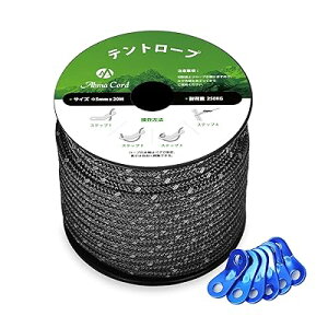 テントロープ パラコード ガイロープ タープ用 張り綱 反射材入り 5mm50m 多機能 防水 耐摩耗性 登山 設営 キャンプ用品 結びやすい。素材は大事:ロープの表面生地は耐水性に優れていたポリエステルを使用しています...