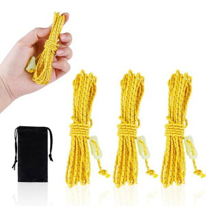 ガイロープ テントロープ ダイニーマ タープロープ 2mm 耐荷重330KG 高強度な素材 反射 蓄光 自在金具付き 軽量 長さ4m 長さ4m キャンプ ロープ アウトドア 収納袋付き (イエロー4本...