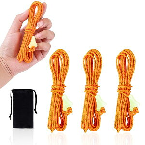 ダイニーマ ロープ ガイロープ 2mm テントロープ パラコード 反射材入り 蓄光自在金具付き 耐荷重330KG 軽量 高強度 高耐候性 長さ4m 4本セット キャンプ アウトドア (オレンジ4本入り...