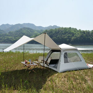 ワンタッチ開閉システムを搭載し、ポップアップテントのように簡単に設営可能です。折りたたみテントとしての利便性を活かし、初心者でも手間なくすぐに使用できます。 防雨加工が施されており、接続部分には防水テープ処理を施しています...