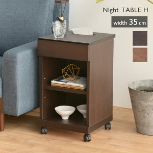 ・幅35 奥行35 高さ60cm カラー ・ブラウン・ダークブラウン 仕様 ・幅35cmのナイトテーブル ・引出後ろにボックスティッシュの収納スペース。 ・ストッパー付きキャスターが