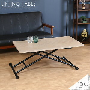 昇降式テーブル 【幅100cm】 リフティング テーブル デスク ソファテーブル 机 リビング ダイニング キャスター付き ハイ ロータイプ モダン 西海岸 ヴィンテージ ナチュラル シンプル。