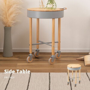 :合成樹脂化粧繊維板 脚部:粉体塗装セット内容昇降式 サイドテーブル キャスター付き商品特徴 高さを無段階で調節できる昇降式サイドテーブル
