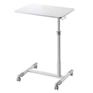 シンプルデザインの昇降サイドテーブル。 移動がしやすいキャスター付きで、様々なシーンで活躍します。 天板には、比較的傷や汚れに強いPVCシートを使用し簡易的な作業テーブルとしても便利です。 ●前足の高さが3.5c