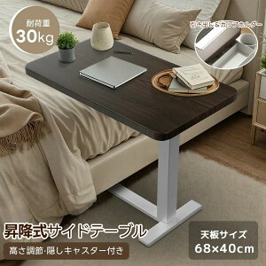 【1年保証/送料無料】【高さ調整/耐荷重30KG】サイドテーブル カップホルダー 引き出し付き テーブル昇降式 ガス圧昇降ベッドテーブル PCテーブル 介護テーブル キャスター付き