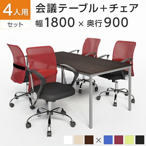 [送料無料][法人後払対応]【4人用 会議セット】会議テーブル 1800×900 + メッシュチェア 肘なし キャスター付き【4脚セット】のご紹介です|激安オフィス家具通販のオフィスコム